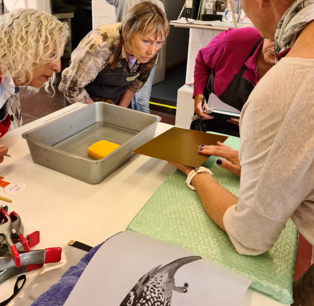 I have been teaching for some years and enjoy working with both children and adults. When teaching children, I try to convince them that 'nothing is a mistake,' all our work can say and express something. I love seeing students' expressions when they pull their first print. Absolute magic!