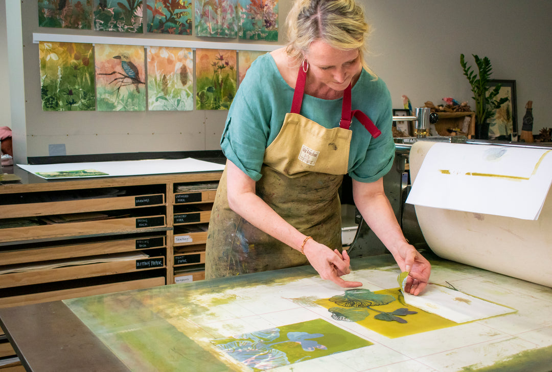 Inking plates and preparing the press is grounding; it's physical, almost like being in the garden.